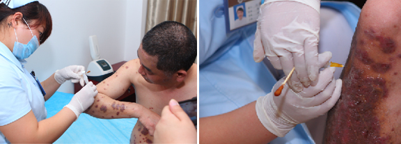 针对宦某的情况,南京肤康皮肤病研究所的医生先对宦某的皮肤进行了全面的检测,由于宦某病情特殊,医生组开展了病情研讨会,最终决定采用“中医经络肺俞十穴排毒祛癣疗法“为其治疗,看到南京肤康的医生那么的帮助他,宦某对这次的治疗也充满了希望,在治疗15天的时候,宦某的背部牛皮癣明显好转,皮肤色素开始生长,坚持治疗45天,宦某的牛皮癣得以恢复。