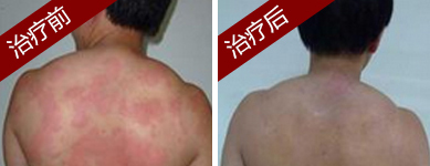 接诊的是肤康的尚功国主任,已经从事皮肤病临床治疗40多年,经验相当的丰富,一看张先生身上的红疹,尚功国主任就判断出张先生得的是荨麻疹,之前用过些药,导致了后来泛发全身,好在来的还算及时,尚功国采用了“中医经络合谷十穴排毒祛疹疗法”,先对荨麻疹的病因十二经络进行系统检测查清病因,然后采用“中医经络合谷十穴排毒祛疹疗法”有效调节机体抵抗力。经过3天的治疗,张先生身上的红疹明显消退,瘙痒症状也减轻了很多,然后尚功国又给张先生继续加了一个疗程巩固疗效,现在张先生已经痊愈了。