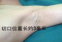 根据不同患者的腋下皮纹走向,在患者腋下皮肤褶皱处开一个微细小创口,大小在3—12㎜之间,因个人体质而异。